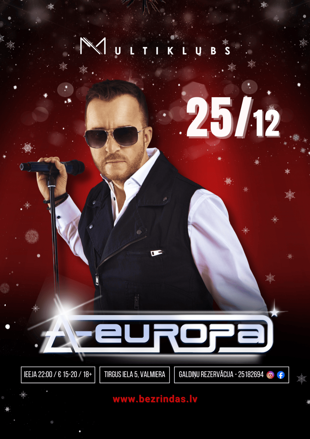 Ziemassvētku brīvdienas kļūst vēl spožākas, jo A-EUROPA atgriežas Multiklubā, lai radītu īstu svētku atmosfēru! Neaizmirstams vakars un visi iemīļotākie hiti garantēti!