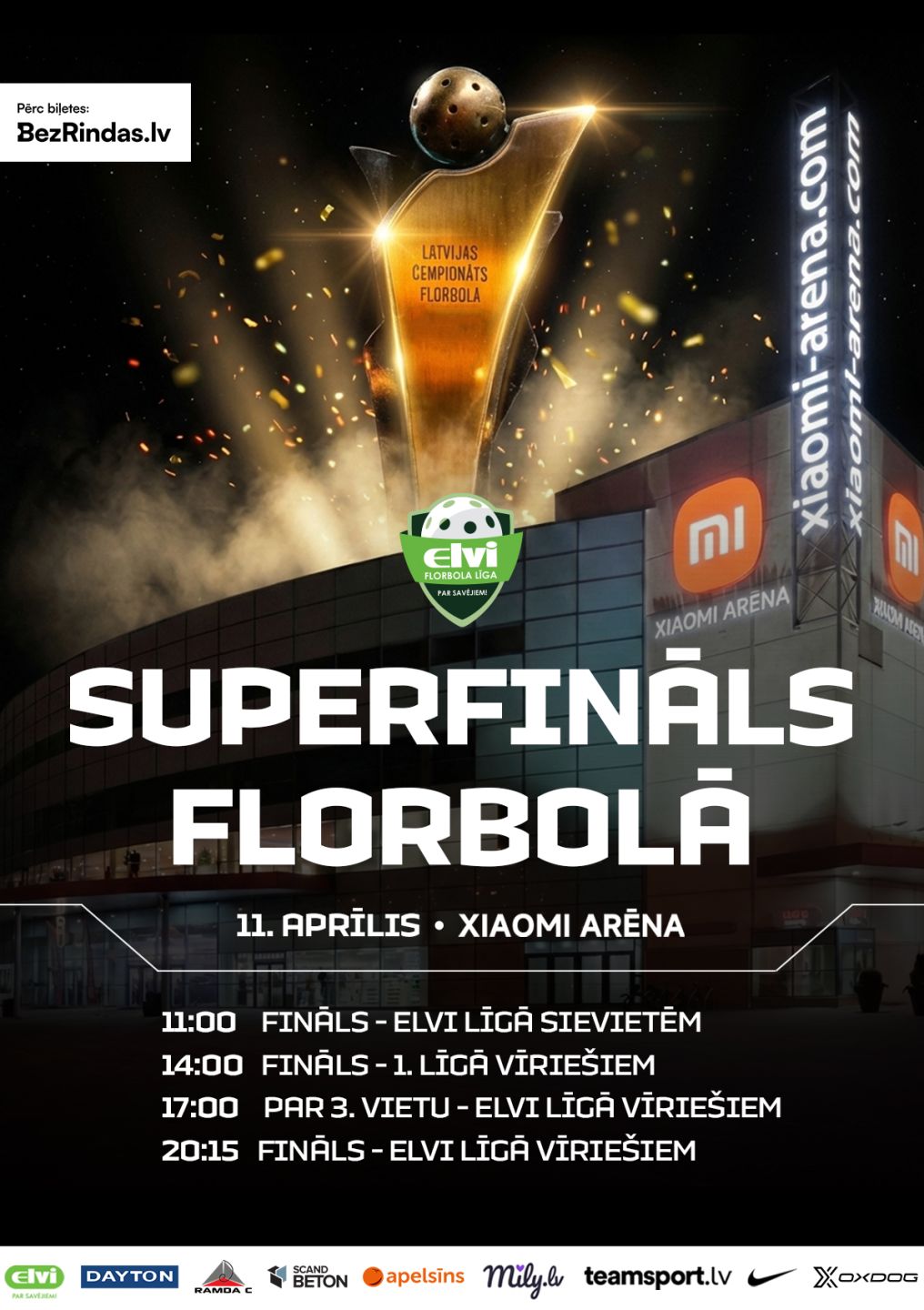 11. aprīlī "Xiaomi arēna" uzņems Latvijas florbola sezonas centrālo notikumu - ELVI florbola līgas Superfinālu. Biļetes uz pasākumu ir iespējams iegādāties tikai iepriekšpārdošanā www.bezrindas.lv.