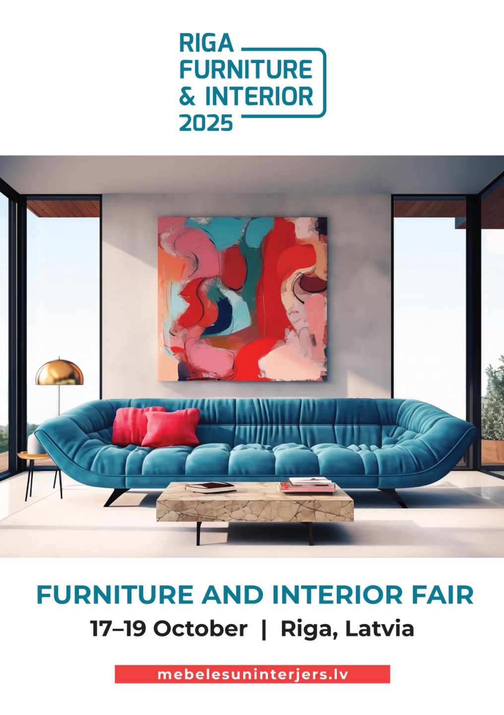 From October 17 to 19, the international furniture and interior design trade show "RIGA FURNITURE AND INTERIOR 2025" will be held in Ķipsala, which offers the latest design furniture collections, unique interior items and finishing materials, furniture fittings, doors, floor coverings, modern light fixtures and other originals. design and lifestyle products. Consultations of certified interior designers.