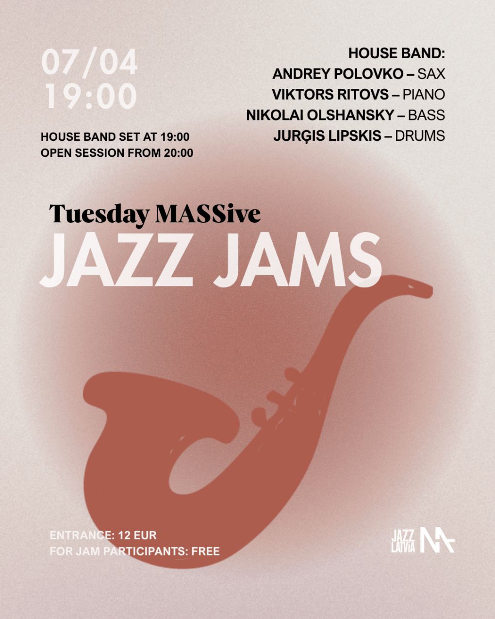 Event "Tuesday MASSive Jazz Jams | 07/04" organizer: MASA studija SIA