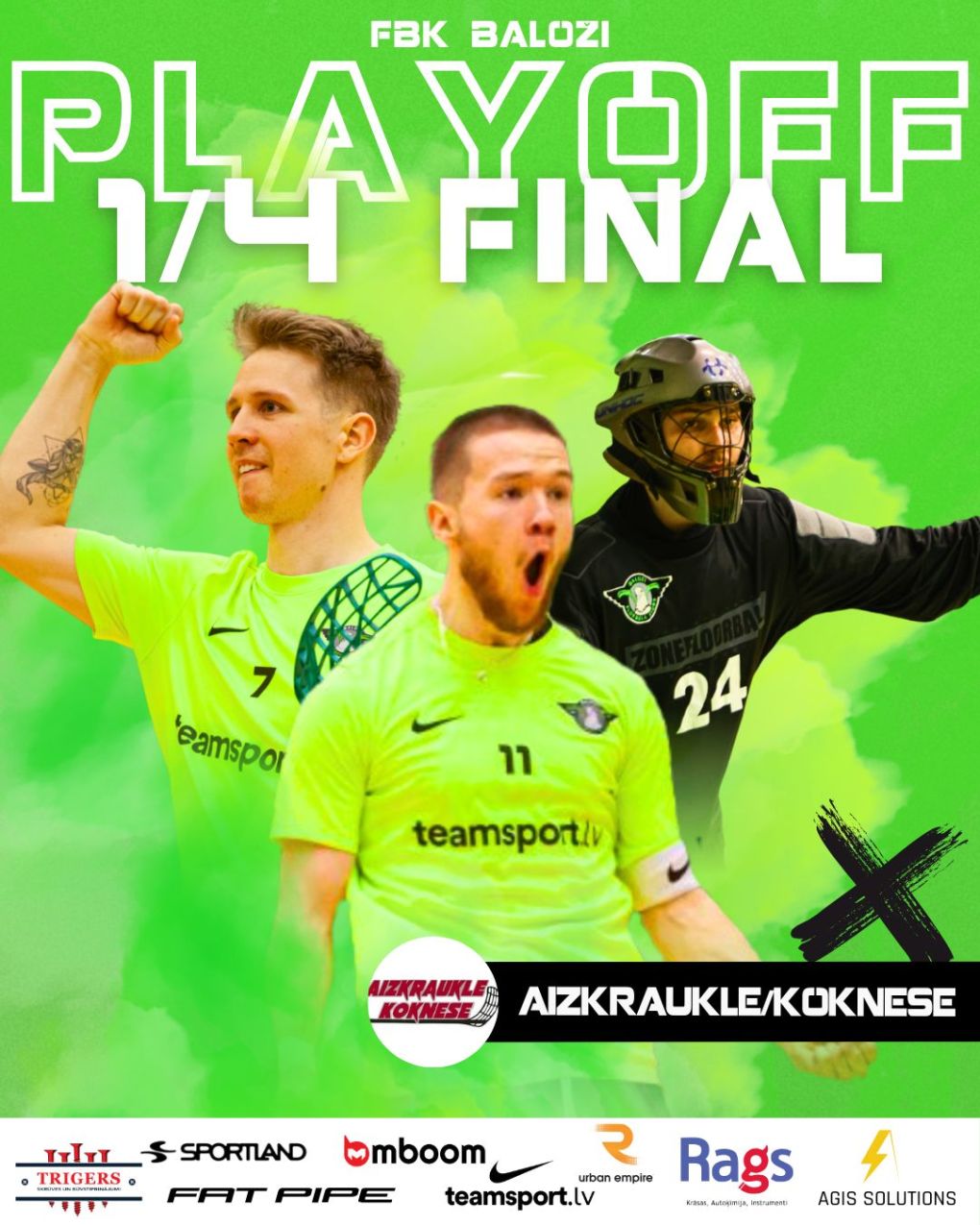 1/4 FINĀLS,3.SPĒLE: FBK Baloži - Aizkraukle/Koknese. Latvijas čempionāts florbolā 1.līga vīriešiem.