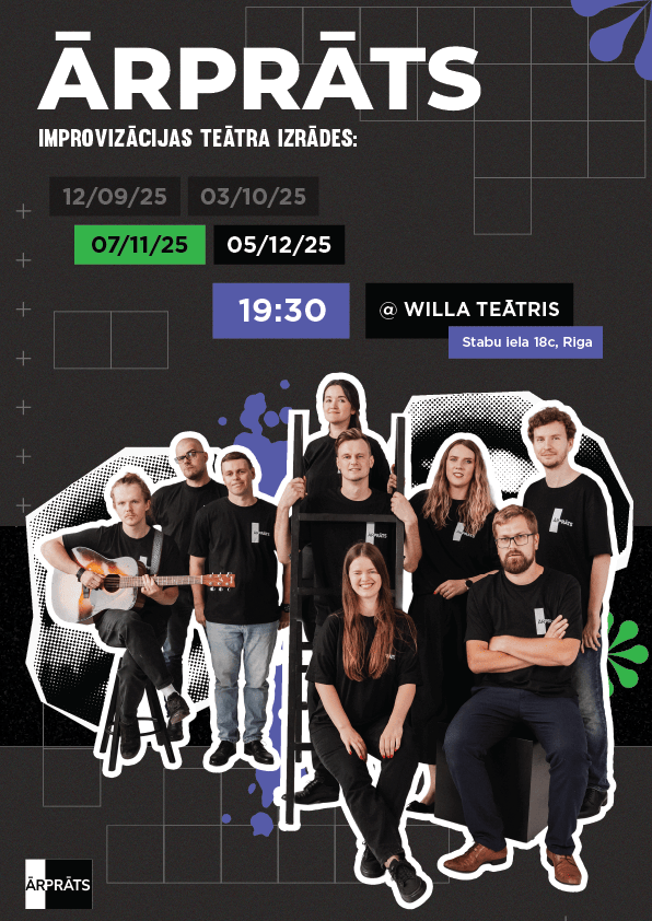 "Improvizatoru apvienība "ĀrprāTS" ar vairāk nekā 10 gadu pieredzi uz skatuves piedāvā aizraujošu teātra pieredzi.