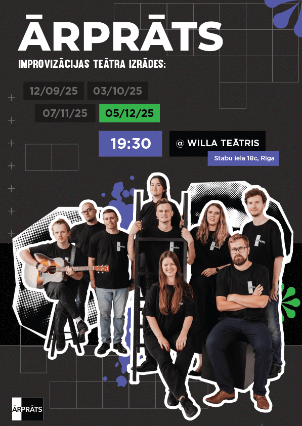 Improvizatoru apvienība "ĀrprāTS" ar vairāk nekā 10 gadu pieredzi uz skatuves piedāvā aizraujošu teātra pieredzi.