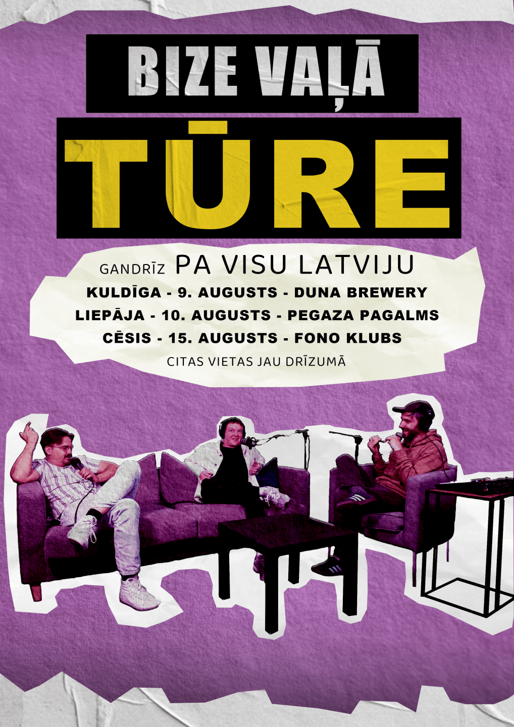 Pēc neskaitāmām klausītāju vēstulēm, komēdijas un filozofijas podkāsts "Bize Vaļā" beidzot dodas Latvijas tūrē un, pavisam iespējams, piestās arī tavā pilsētā!