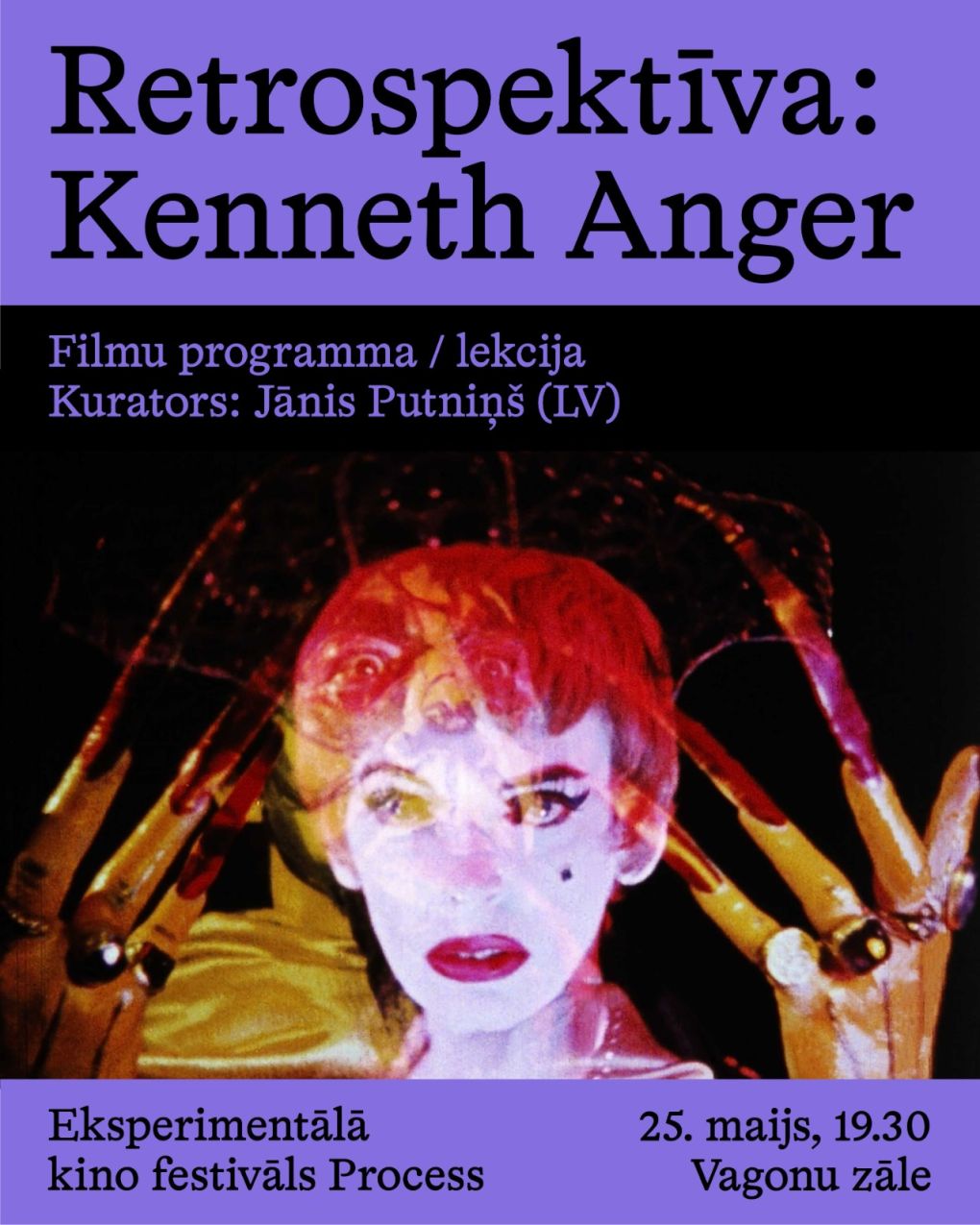 Programmā iekļautas vairākas nozīmīgas filmas, kuras veidojis Kenets Angers (1927-2023) – amerikāņu filmdaris, okultists, 1960. gadu alternatīvās kultūras spīdeklis un autors sensacionālām grāmatām par Holivudas vēsturi.Inauguration of the Pleasure Dome / Baudas kupola inaugurācija. Kenneth Anger