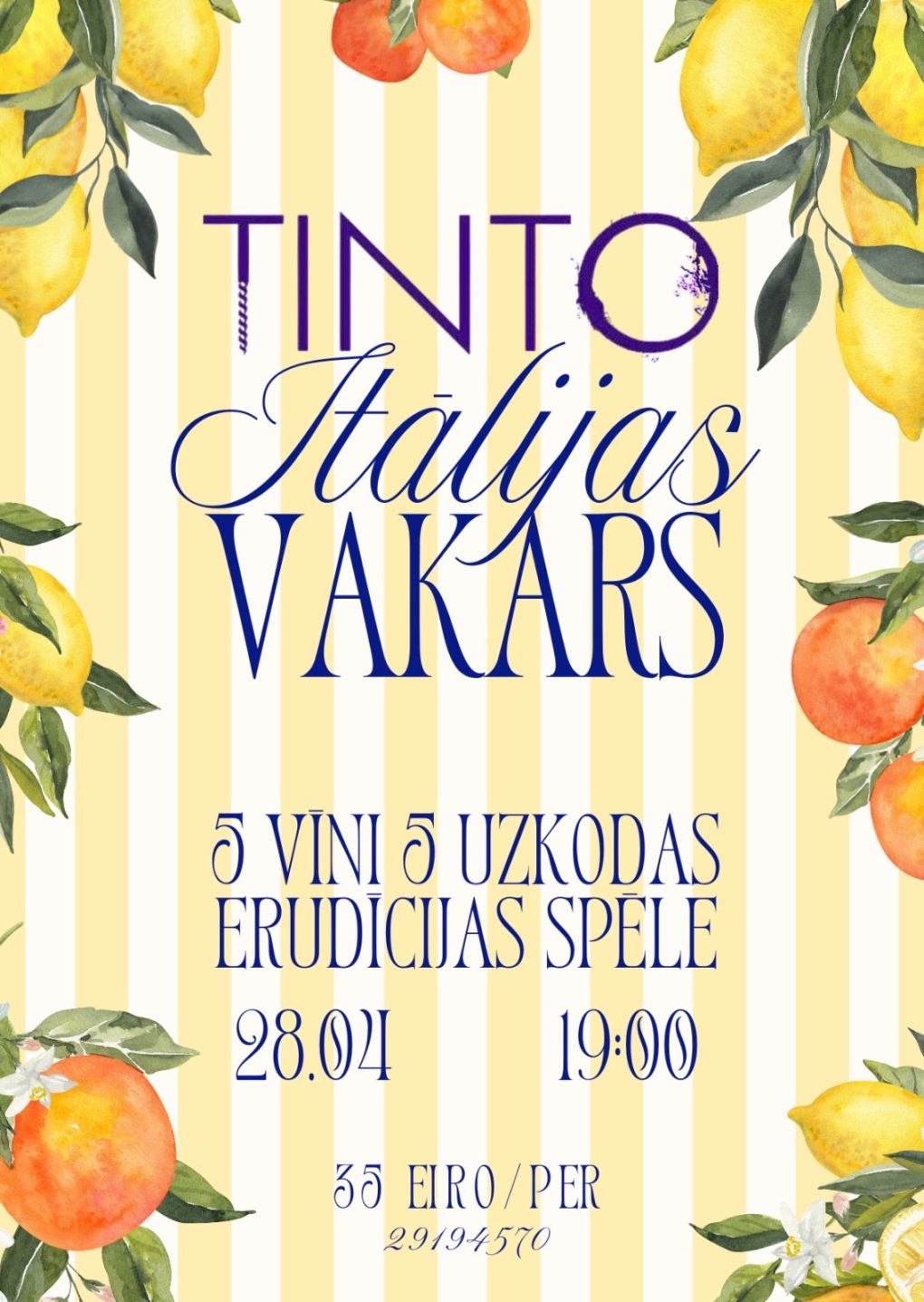 Pasākuma "Erudīcijas vakars kopā ar Itālijas vīniem un uzkodām!" organizators: Tinto SIA