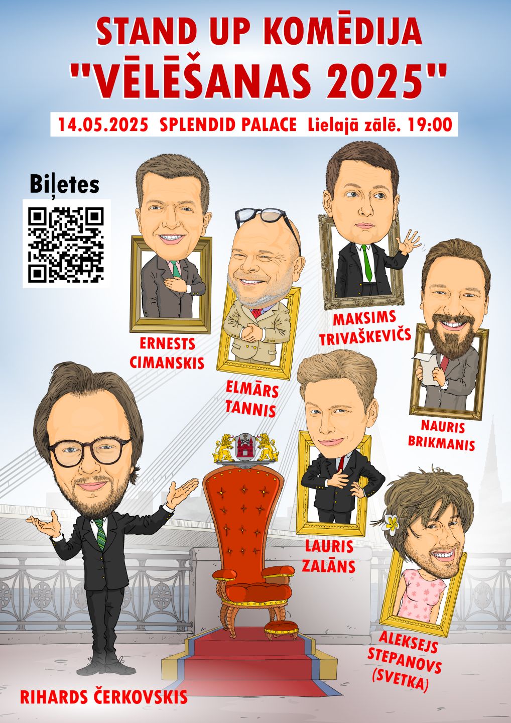 "Vēlēšanas 2025" ir stand-up komēdijas pasākums, kurā mūziķis, komiķi, influenceri un šefpavārs iestājas pavisam citā lomā – viņi tēlos, ka kandidē uz Rīgas mēra krēslu... Katram būs savs stils, savs redzējums un savs totāli izdomāts “plāns pilsētai”.