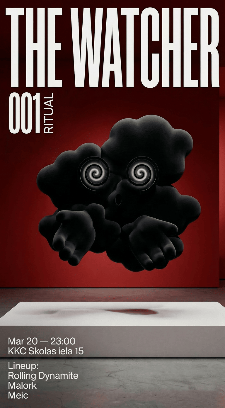 THE WATCHER was never created by humans. It appears only when the music reaches the right state. At first there is only sound. Then the rhythm appears. Time begins to blur. Something starts to form above the dancefloor. A shape made from sound and shadow. From that moment the room feels different. Some say THE WATCHER simply observes the ritual. Others believe it is the one guiding it. As the groove deepens, its presence grows. Eventually it becomes impossible to tell:
