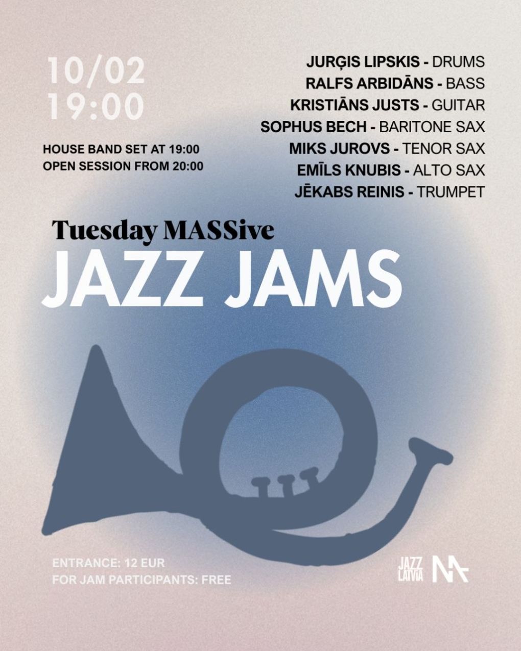 10. februārī plkst. 19.00 turpināsies džeza kluba MASA jauna iknedēļas pasākumu sērija “MASSive Jazz Jams” – džeza improvizācijai veltīti otrdienu vakari, veidojot satikšanās vietu pieredzējušiem meistariem un jaunajiem mūziķiem.