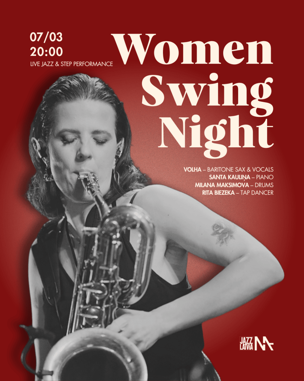 7. martā, par godu Starptautiskai sieviešu dienai, džeza klubs MASA aicina uz svinga un stepa vakaru ar programmu, kas godina sieviešu lomu džeza mūzikā.