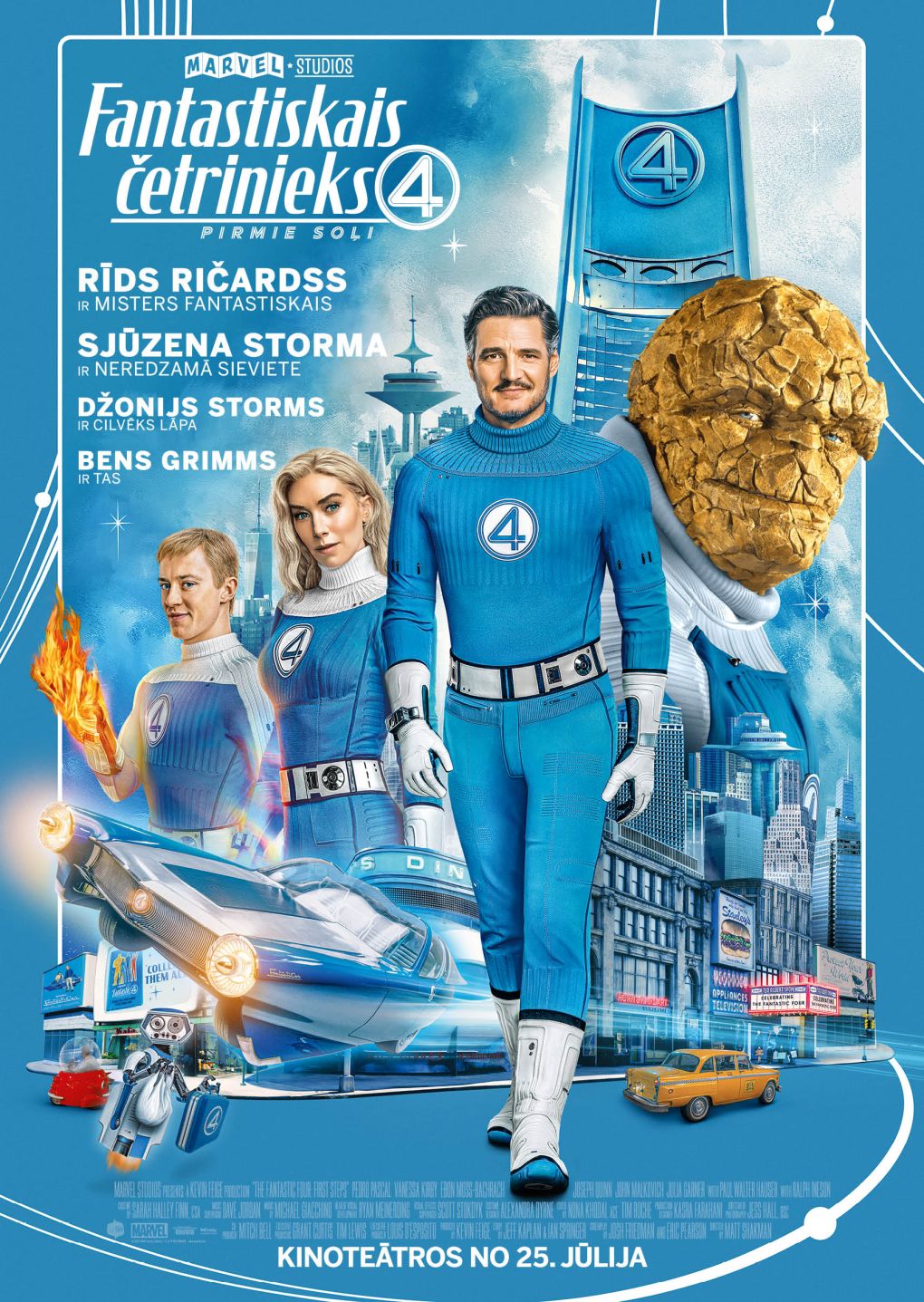 60-to gadu retrofuturistiskajā pasaulē notiekošajā grandiozajā zinātniskās fantastikas piedzīvojumā, skatītāji tiek iepazīstināti ar “Marvel” pirmo ģimeni, kurā ir Misters Fanstastiskais, Neredzamā Sieviete, Cilvēks Lāpa un Tas. Kopā viņi mēģina glābt pasauli no izsalkušā kosmiskā dieva Galaktusa un viņa noslēpumainā vēstneša Surdaba Sērfotāja.