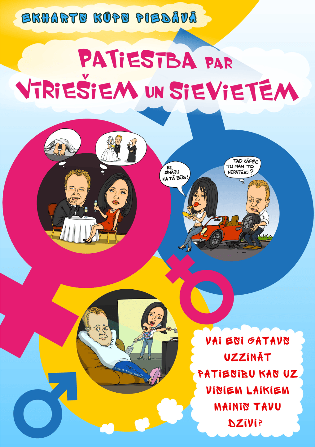Ekharts Kūps (agrāk zināms kā Rihards Čerkovskis) pēdējos 5 gadus ir meklējis patiesību par vīriešiem un sievietēm… Viņš ir izlasījis neskaitāmi daudz grāmatas par šo tēmu, bijis semināros, retrītos, bija pat devies svētceļojumā un nointervējis neskaitāmi daudzus cilvēkus, lai tikai iegūtu atbildes uz sev interesējošajiem jautājumiem par sieviešu un vīriešu atšķirīgo pasaules uztveri, domu gājienu un izcelsmi!