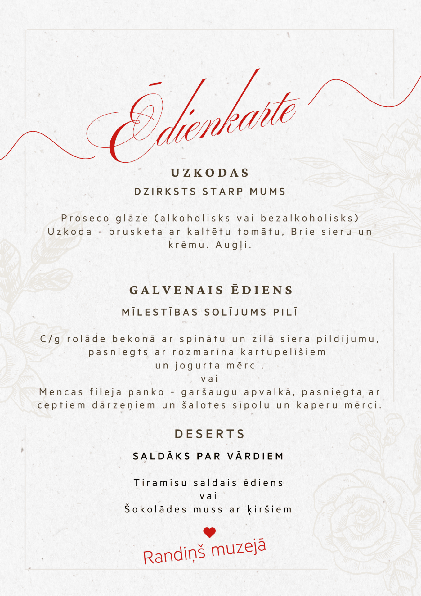 Aicinām Tevi uz Randiņu muzejā, kur romantika mijas ar piedzīvojumu, garda maltīte baudāma mūzikas pavadījumā, un vakaru caurstrāvo īpaša unikālās pils atmosfēra.