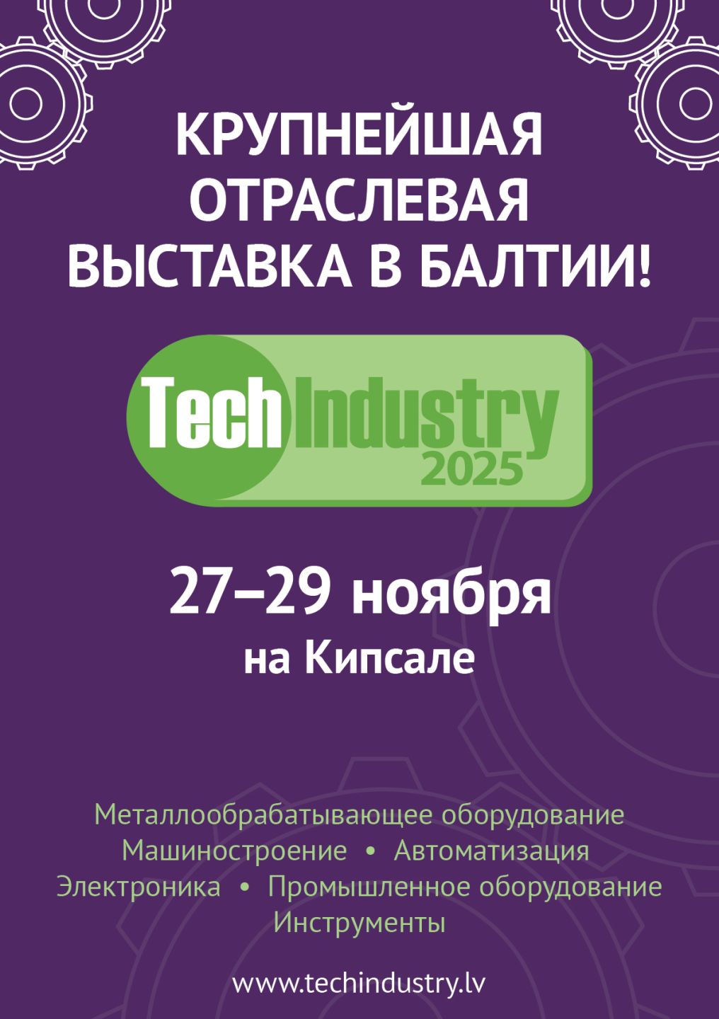 Следите на сайте: www.techindustry.lv и Facebook: www.facebook.com/fairtechindustry/